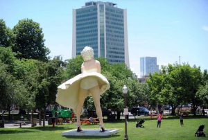 A 26-foot Seward Johnson statue illustrating the star in her iconic pose from “The Seven Year Itch” was installed this week in Latham Park as part of the Stamford Downtown Special Services District’s “Art in Public Places” series that lasts through the summer. MORE