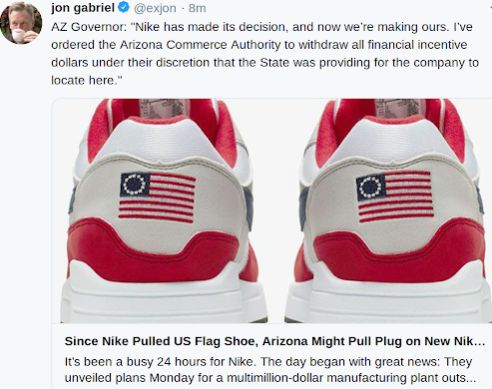 Sneaker maker pulls Independence Day themed shoe after former NFL player raised concerns about symbolism. Kapaernick told the company it shouldn’t sell a shoe with a symbol that he and others consider offensive.