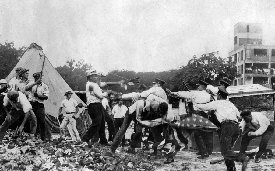 The Bonus Army was a group of 43,000 demonstrators – made up of 17,000 U.S. World War I veterans, together with their families and affiliated groups – who gathered in Washington, D.C. in mid-1932 to demand early cash redemption of their service certificates. MORE